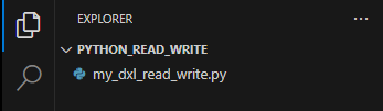 $ mkdir -p my_dxl_project/python $ cd my_dxl_project/python $ code my_read_write.py
